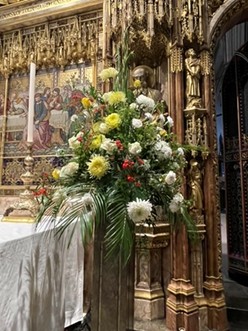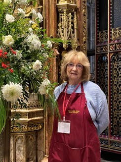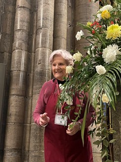 Surrey members: Wendy Jolly and Lynis Williams (Area Chairman) created pedestal arrangements at the High Altar. Chris Brown and Dallas Taylor arranged flowers at the Quire.